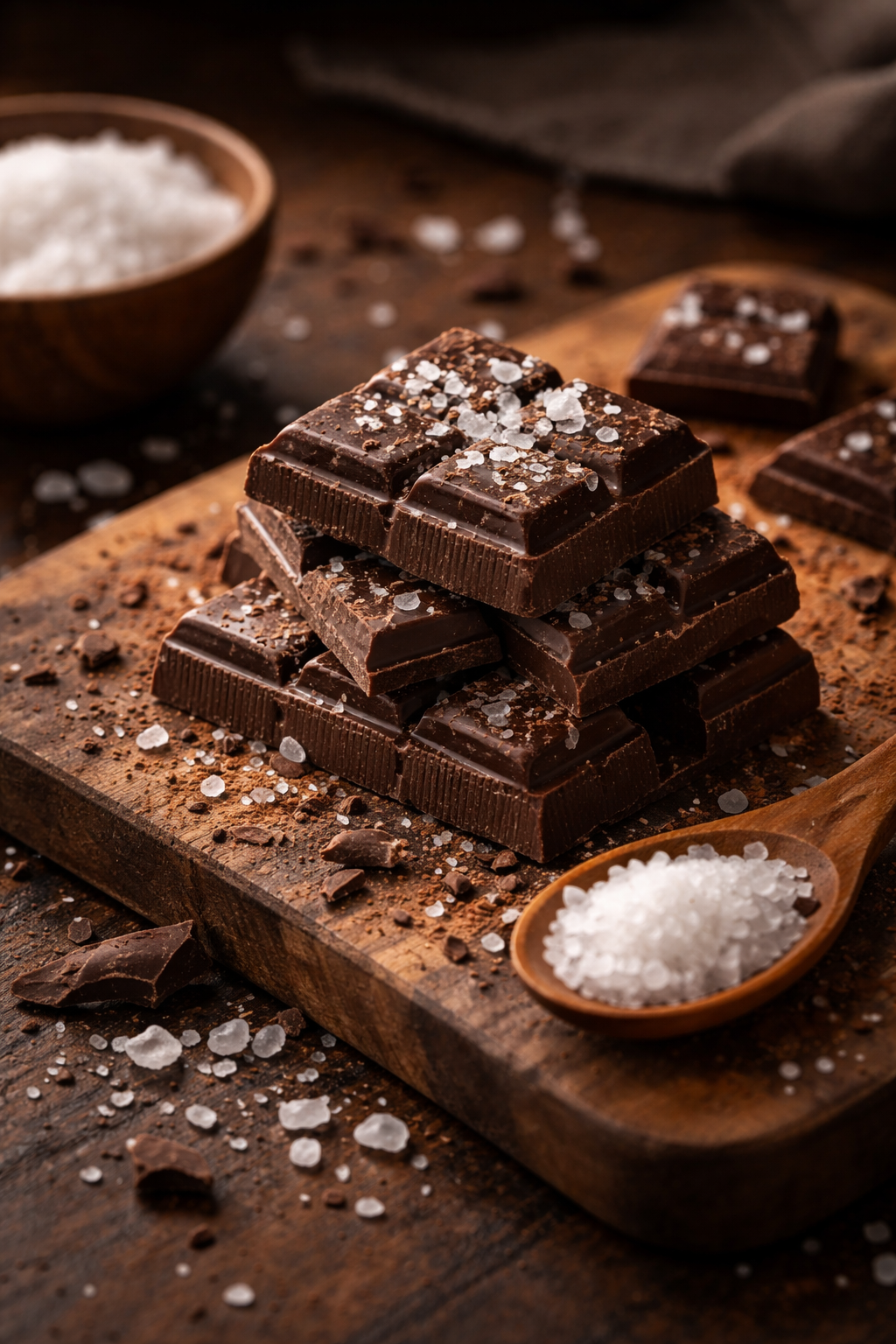 Salt doesn't just add flavor, it wakes chocolate up. A pinch of sea salt sharpens chocolate's sweetness, deepens its cocoa notes, and keeps it from tasting one-note. It's why salted chocolate tastes richer, bolder, and somehow more chocolatey than chocolate alone.